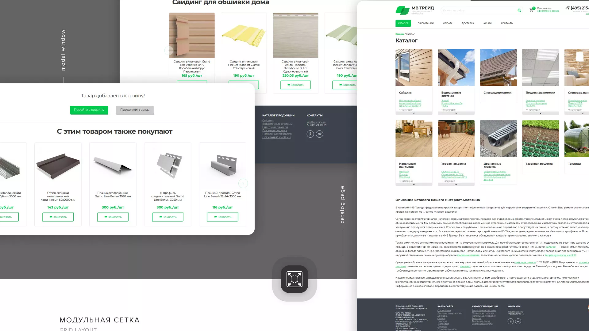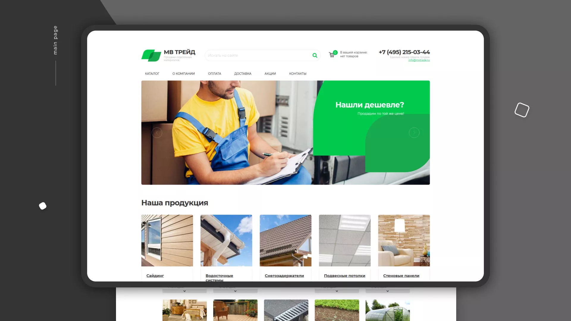 Компания «МВ Трейд» осуществляет продажу сайдинга и отделочных материалов через интернет со своих складов в Товарково. За 17 лет компания зарекомендовала себя надежным поставщиком. Товары реализуются как оптом, так и в розницу.