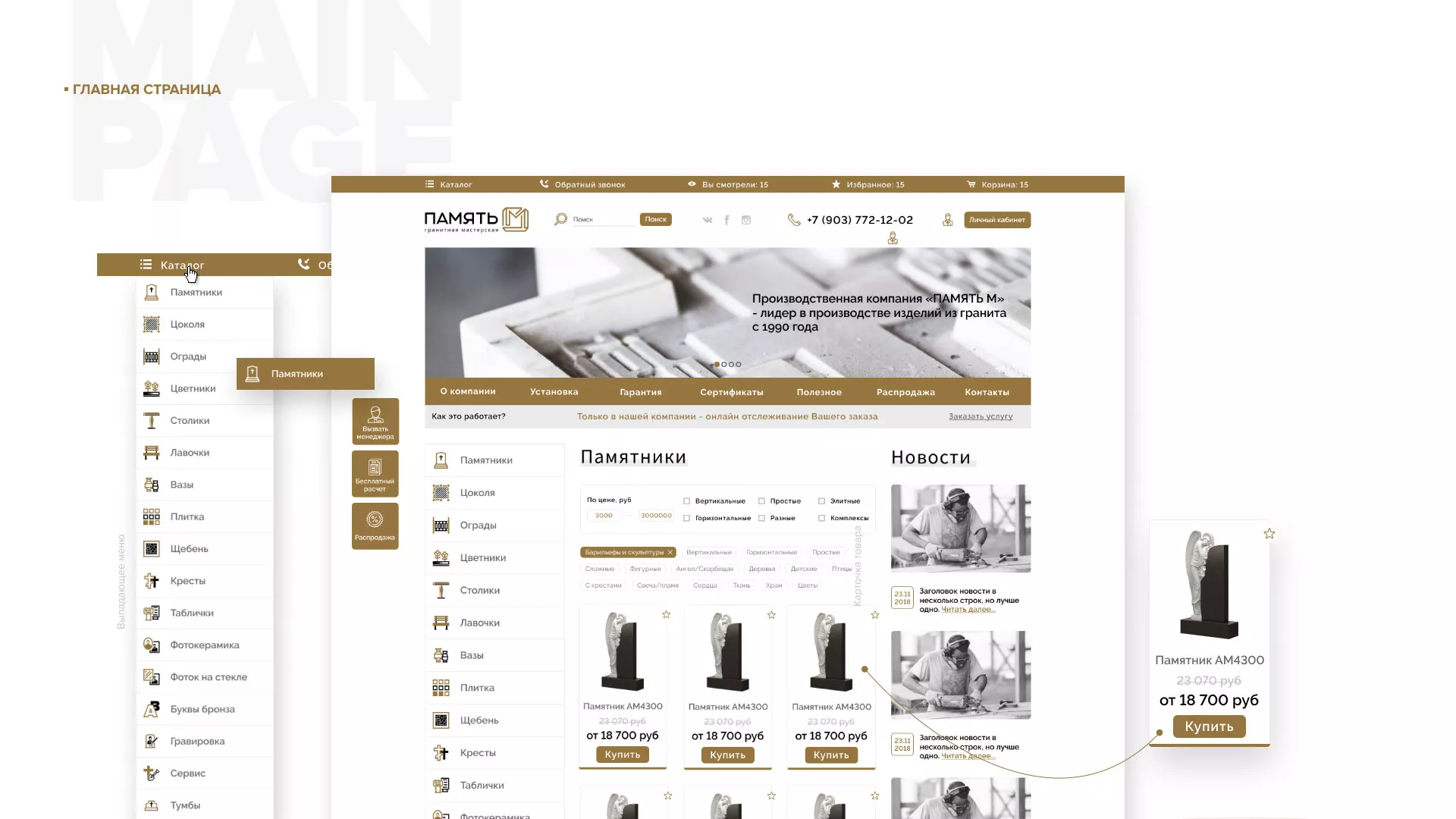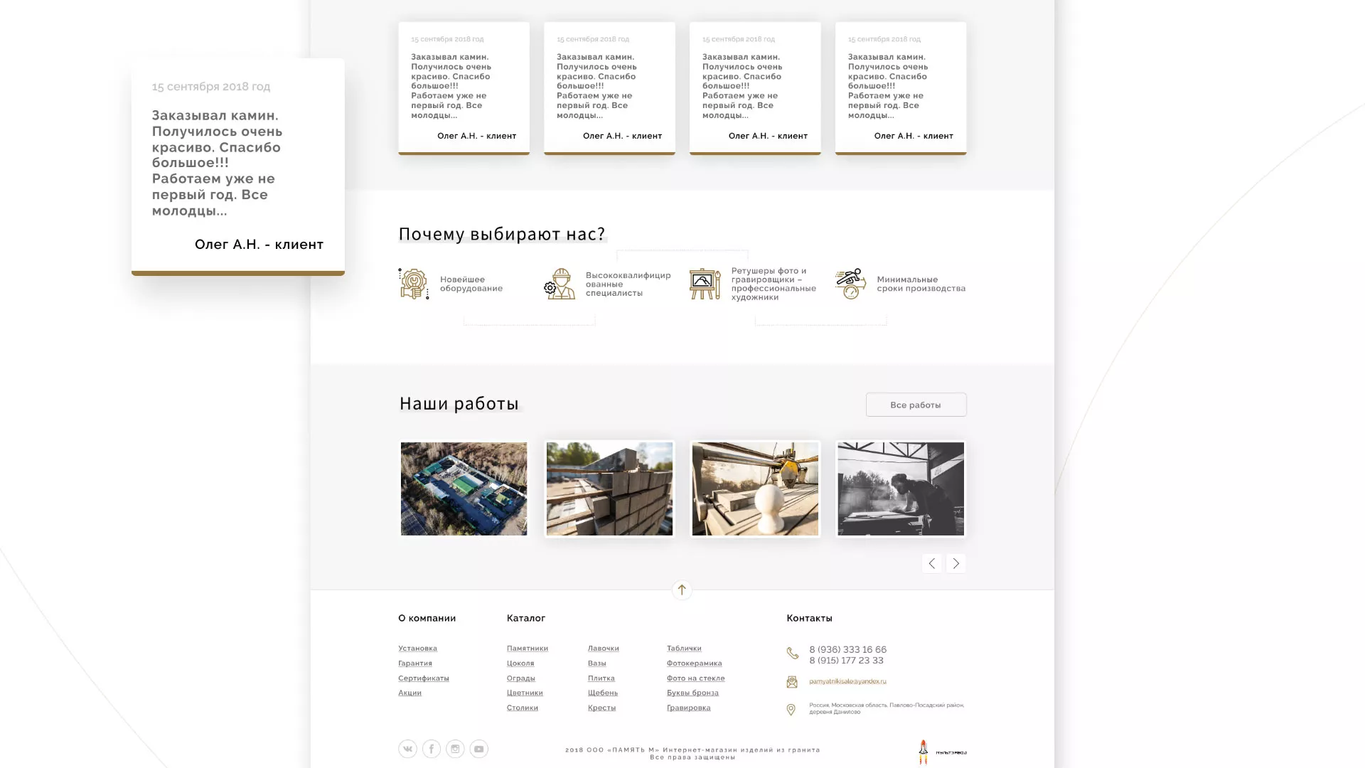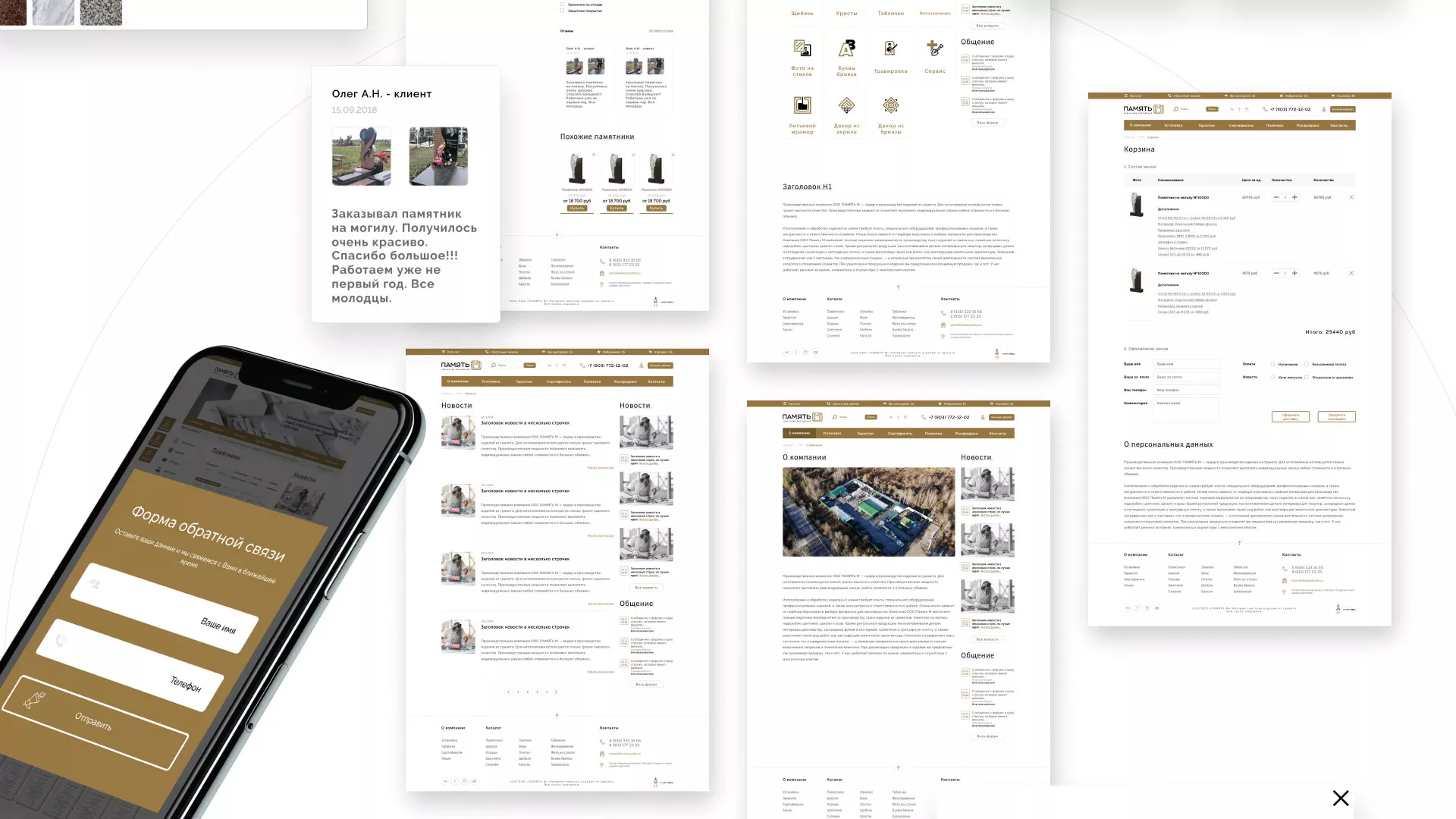 Разработка логотипа, фирменного стиля и сайта в Товарково для компании «Память-М». Компания является предприятием по изготовлению всех видов надгробных сооружений: памятников, цоколей на могилу, оградок, столов, лавочек, ваз, балясин, плитки, мемориальных комплексов. Компании «Память-М» изготавливает все виды мемориальных изделий на собственном производстве в Товарково.