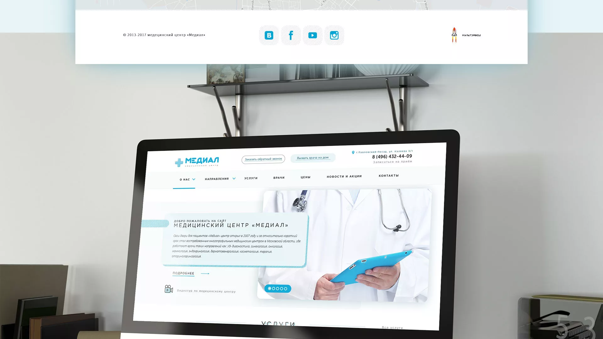 Сайт медцентра «Медиал» в Товарково является «лицом» учреждения, презентует его с лучших сторон, доступно информирует об оказываемых услугах. Он легкий в навигации и использовании. На таком сайте должно быть просто узнать о врачах, услугах, записаться на прием всем возрастным категориям, от 16 до 60 лет. Это должен быть современный, функциональный и эстетически приятный сайт. В рамках создания сайта для медицинского центра компания «Мультзавод» в Товарково ориентируется именно на эту задачу.